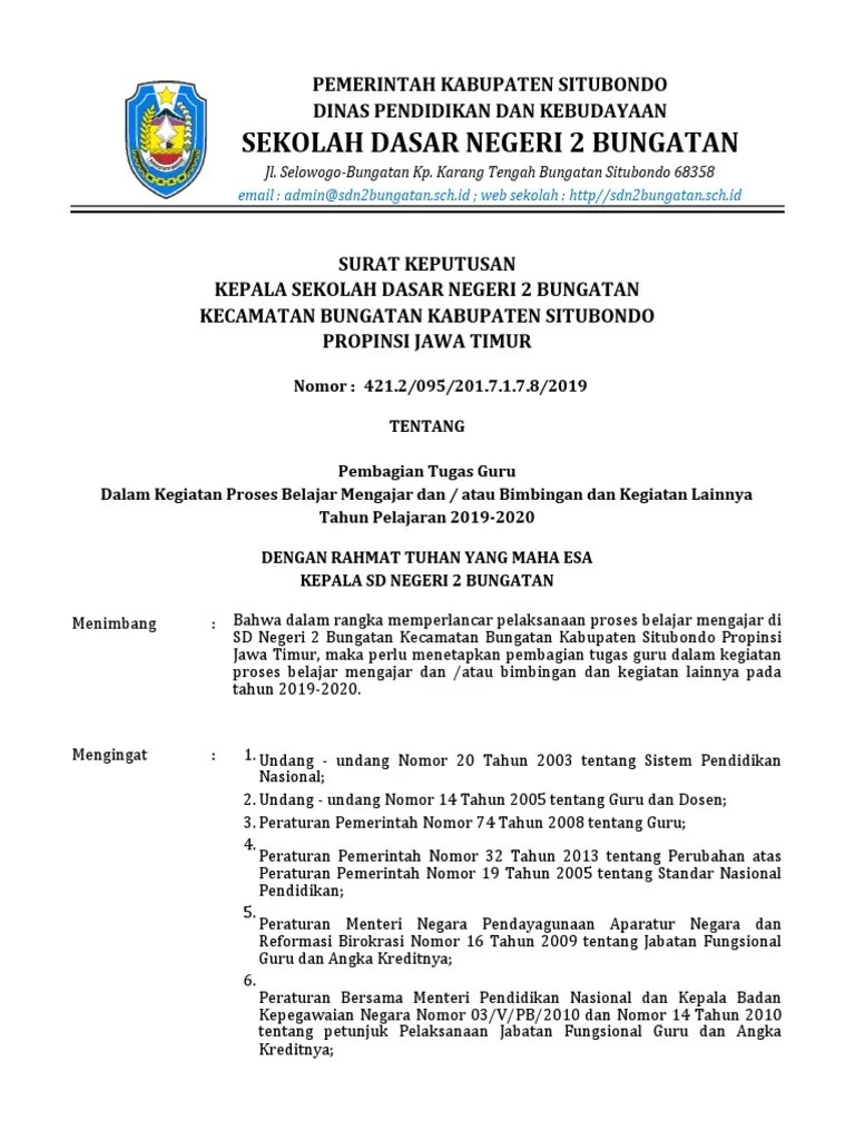 Demikian surat tugas ini kami buat agar dilaksanakan dengan . Sk pembagian tugas mengajar sd mi. Untuk melaksanakan tugas sebagai guru kelas pada tahun pelajaran 2012 / 2013 di sdn cijambe ii. 2015/2016 ganjil tipe file : Surat keputusan sk pembagian tugas mengajar guru.